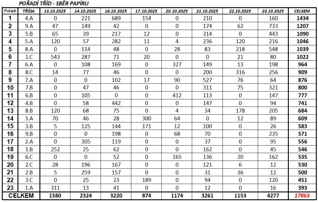 Sběr starého papíru bude probíhat od 13.10. do 23.10.2025 (vždy od pondělí do čtvrtka).
