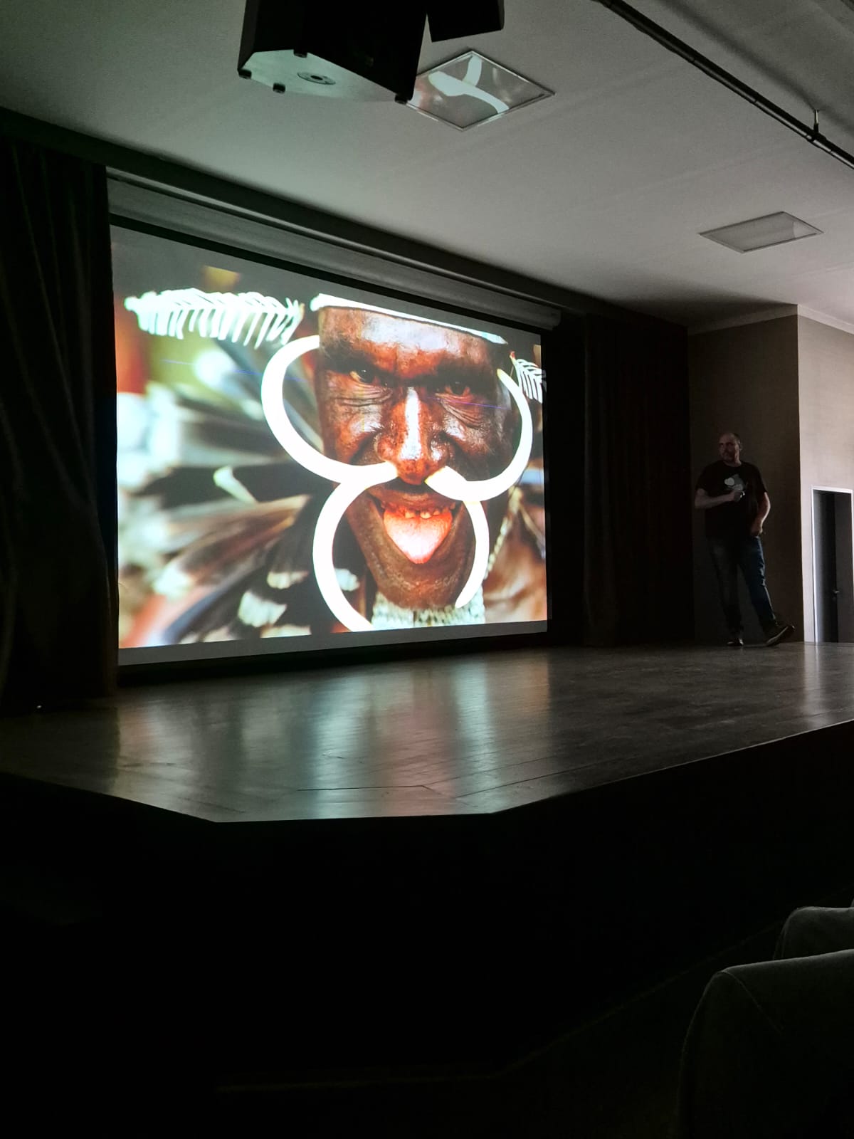 Naučil nás i základy indonéštiny a vtipným způsobem ukázal, jak se tvoří množné číslo, což mnohé pobavilo. Velkou část přednášky věnoval deštným pralesům, které bohužel rychle mizí kvůli těžbě a pěstování palmy olejné. Vyprávěl o tom, jak v pralese stopovali orangutany a další primáty.