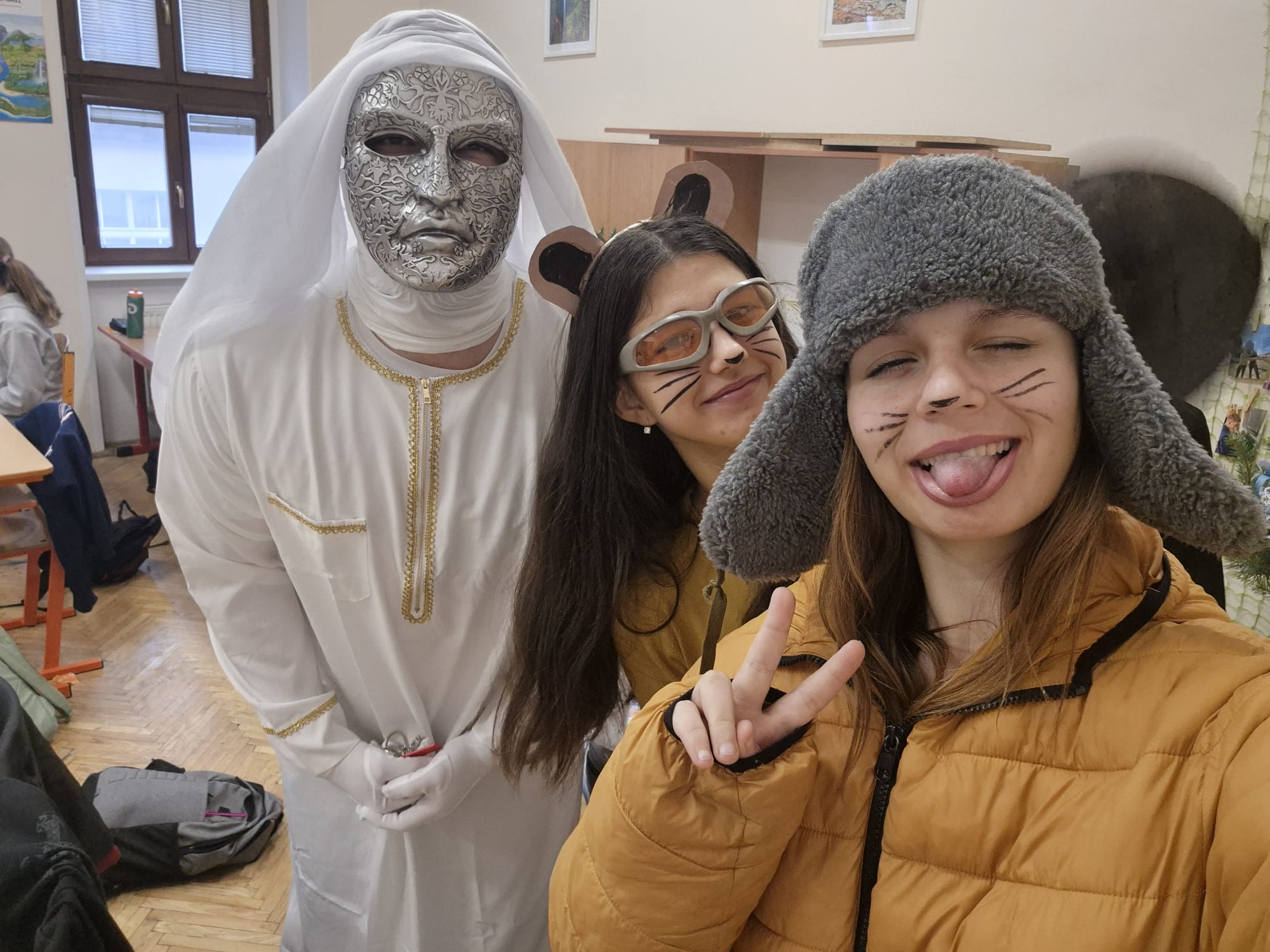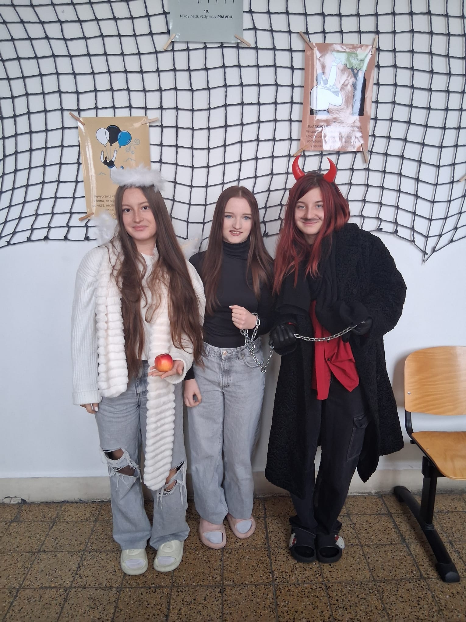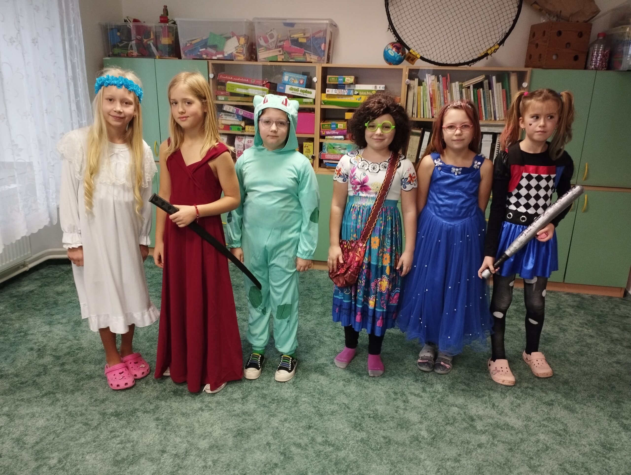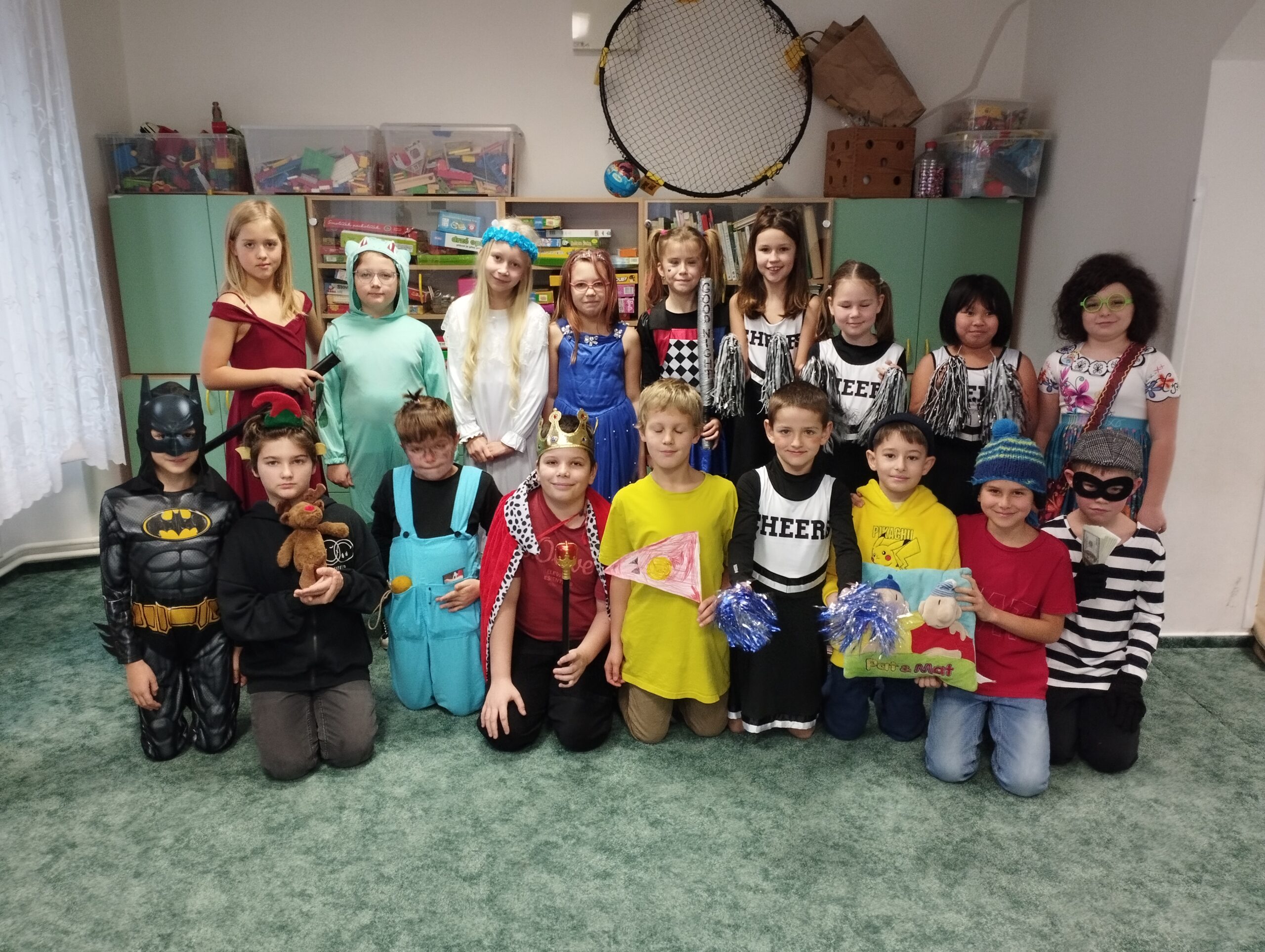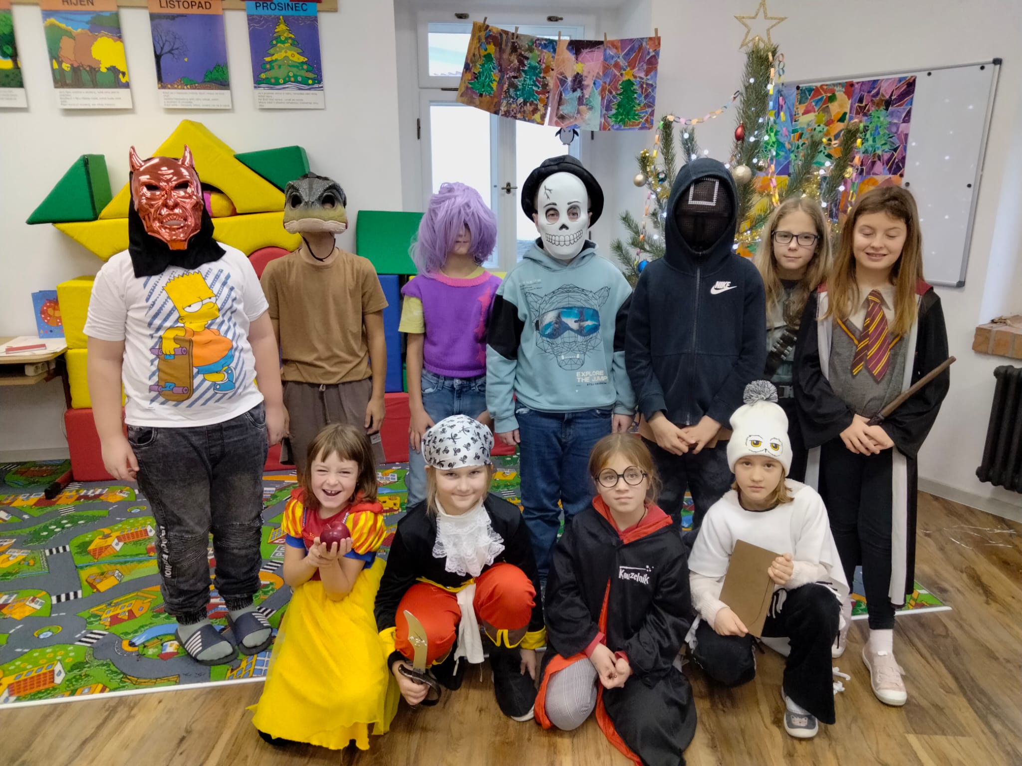Žáci i učitelé dorazili v nápaditých kostýmech – viděli jsme tajemné agenty, oblíbené Krysáky, středověké i náboženské postavy, zelené Grinche, veselé Chipmunky, čerty i kouzelníky z Harryho Pottera. Každý kostým byl originální a přispěl k jedinečné atmosféře celého dne.